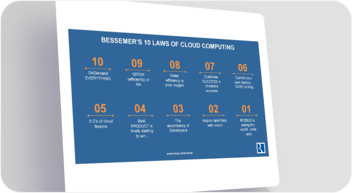 BESSEMER’S 10 LAWS OF CLOUD COMPUTING 10 09 08 07 06 OnDemand GROW Sales Customer Control your EVERYTHING: (efficiently) or efficiency is SUCCESS = own destiny… die. your oxygen. company CASH is king. success. 05 04 03 02 01 5 C's of cloud Best The Inspire (and hire) MOBILE is finance. PRODUCT is ascendancy of with vision eating the finally starting Developers world...wide to win. . web www.bvp.com/cloud