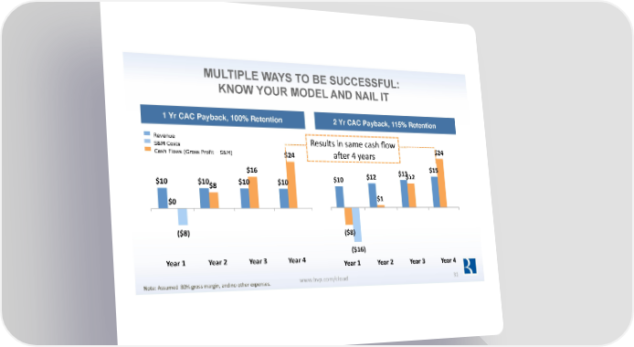 MULTIPLE WAYS TO BE SUCCESSFUL: KNOW YOUR MODEL AND NAIL IT 1 Yr CAC Payback, 100% Retention 2 Yr CAC Payback, 115% Retention Revenue Results in same cash flow S&M Costs $24 Cash Flows (Gross Profit – S&M) $24 aber 4 years $16 $13 $15 $10 $12 $12 $10 $10 $10 $10 $8 $0 $1 ($8) ($8) ($16) Year 1 Year 2 Year 3 Year 4 Year 1 Year 2 Year 3 Year 4 Note: Assumed 80% gross margin, and no other expenses. www.bvp.com/cloud 32