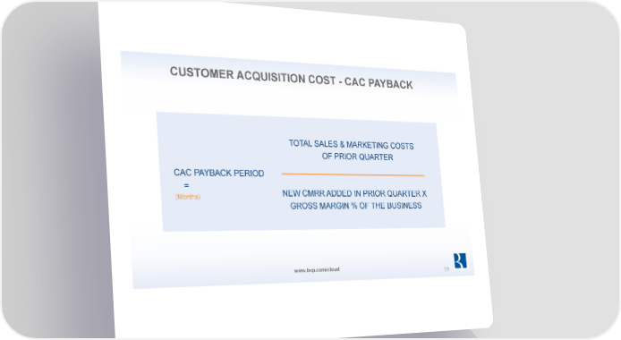 10 Laws of Building a Unicorn Page 18 Page 20CUSTOMER ACQUISITION COST - CAC PAYBACK TOTAL SALES & MARKETING COSTS OF PRIOR QUARTER CAC PAYBACK PERIOD = NEW CMRR ADDED IN PRIOR QUARTER X (Months) GROSS MARGIN % OF THE BUSINESS www.bvp.com/cloud 19