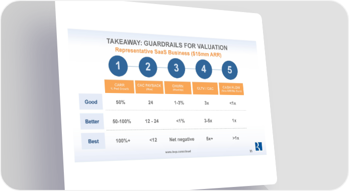 TAKEAWAY: GUARDRAILS FOR VALUATION Representative SaaS Business ($15mm ARR) 1 2 3 4 5 CARR CAC PAYBACK CHURN CLTV / CAC CASH FLOW % Fwd Growth (Mos) (Monthly) (New ARR/Mo Burn) Good 50% 24 1-3% 3x <1x Better 50-100% 12 - 24 <1% 3-5x 1x Best 100%+ <12 Net negative 5x+ >1x www.bvp.com/cloud 33