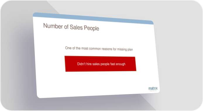 Number of Sales People One of the most common reasons for missing plan Didn’t hire sales people fast enough