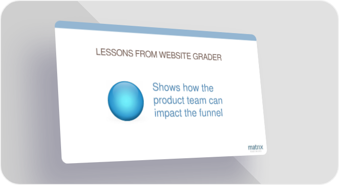 LESSONS FROM WEBSITE GRADER Shows how the product team can impact the funnel 12 Key Levers of SaaS Success Page 35 Page 37