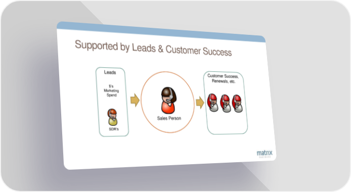 Supported by Leads & Customer Success Leads Customer Success, Renewals, etc. $’s Marketing Spend Sales Person SDR’s