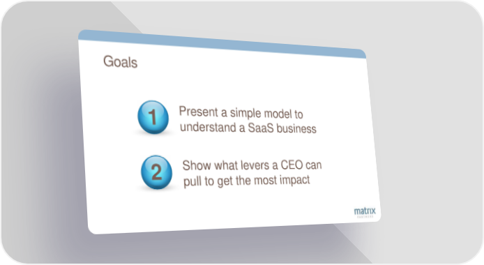 Goals 1 Present a simple model to understand a SaaS business 2 Show what levers a CEO can pull to get the most impact