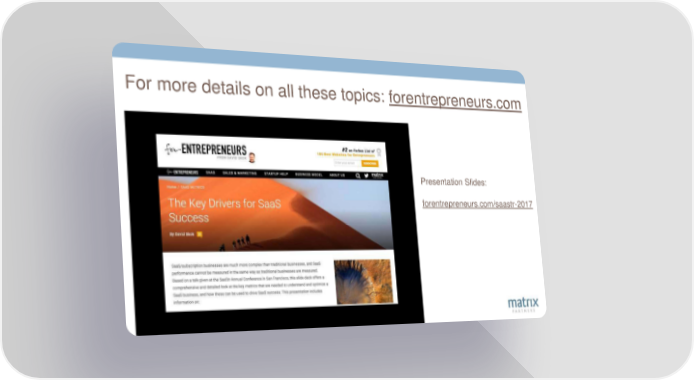 12 Key Levers of SaaS Success Page 83 For more details on all these topics: forentrepreneurs.com Presentation Slides: forentrepreneurs.com/saastr-2017