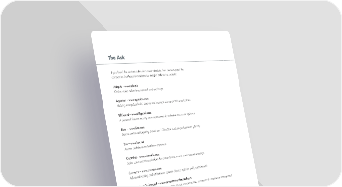 The Ask If you found the content in this document valuable, then please support the companies that helped contribute the insights behind this analysis: Adap.tv - www.adap.tv Online video advertising network and exchange Apperian - www.apperian.com Helping enterprises build, deploy and manage internal mobile applications BillGuard – www.billguard.com A personal finance security service powered by collective consumer vigilance Bizo – www.bizo.com Precise online ad targeting based on 100 million business professionals globally Box – www.box.net Access and share content from anywhere Clearslide – www.clearside.com Sales communications platform for presentations, emails and in-person meetings Convertro – www.convetro.com Advanced tracking and attribution to optimize display, optimize yield, optimize profit Cornerstone OnDemand – www.cornerstoneondemand.com Comprehensive solution for learning, performance, compensation, succession & compliance management Criteo – www.criteo.com World leader in personalized retargeting, making display advertising perform like search Docusign – www.docusign.com World’s largest electronic signature platform Eloqua – www.eloqua.com Complete revenue performance management platform GFI Teamviewer – www.gfi.com Web security and productivity for the SMB including remote connection, support, and security products Bessemer Venture Partners 27