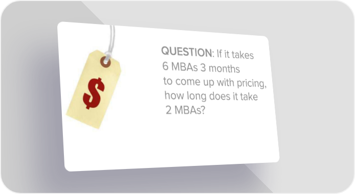 QUESTION: If it takes 6 MBAs 3 months to come up with pricing, how long does it take 2 MBAs?
