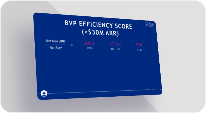 BVP EFFICIENCY SCORE (<$30M ARR) Net New ARR = GOOD BETTER BEST Net Burn < 0.5x 0.5x – 1.5x > 1.5x S A A S T R A N N U A L 2 0 1 9