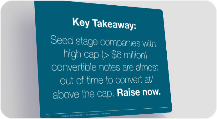 Key Takeaway: Seed stage companies with high cap (> $6 million) convertible notes are almost out of time to convert at/ above the cap. Raise now. © 2016 ALL RIGHTS RESERVED ● MATTERMARK.COM ● (415) 366-6587